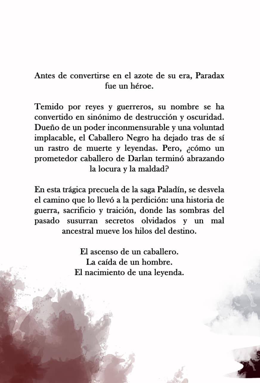 En esta trágica precuela de la saga Paladín, se desvela el camino que lo llevó a la perdición: una historia de guerra, sacrificio y traición, donde las sombras del pasado susurran secretos olvidados y un mal ancestral mueve los hilos del destino.